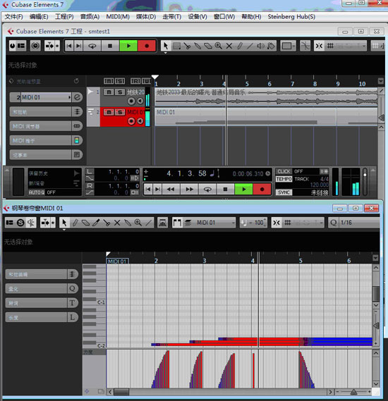 6、为了方便查看,在 Cubase 上面打开"钢琴卷帘窗"进行查看实际记录内容。